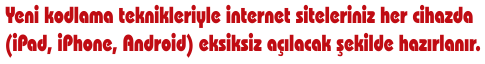 Yeni kodlama teknikleriyle internet siteleriniz her cihazda (iPad, iPhone, Android) eksiksiz açılacak şekilde hazırlanır.